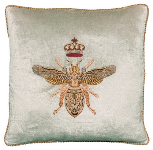 Dragonflies on Blue and Ivory Velvet Rectangle Cushion